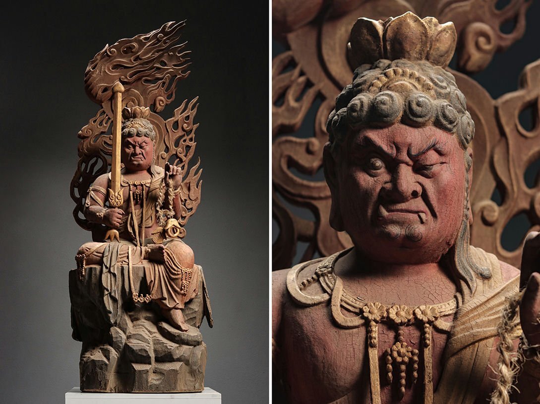 - ▼渡鶴羽▼A9264明時代 楠木木彫 彩絵 不動明王像 細工彫刻★仏教古美術★仏像★細密細工★廃寺旧蔵★廃寺買出品