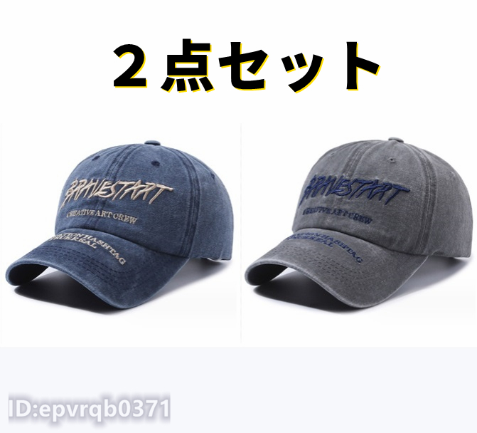 - 「2点セット」野球帽 刺繍 英文字 ゴルフキャップ メンズ キャスケット デニムキャップ 帽子 アメカジ フリーサイズ 調節可能 グレー/青