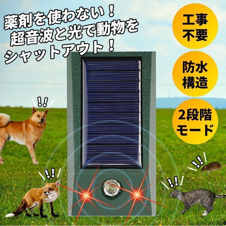 - 猫よけ 超音波 ソーラー 防水 動物撃退器 害獣対策 猫よけグッズ 猫対策 猫除け ネズミ対策 害鳥対策犬除け イノシシよけ IP58防水 防塵
