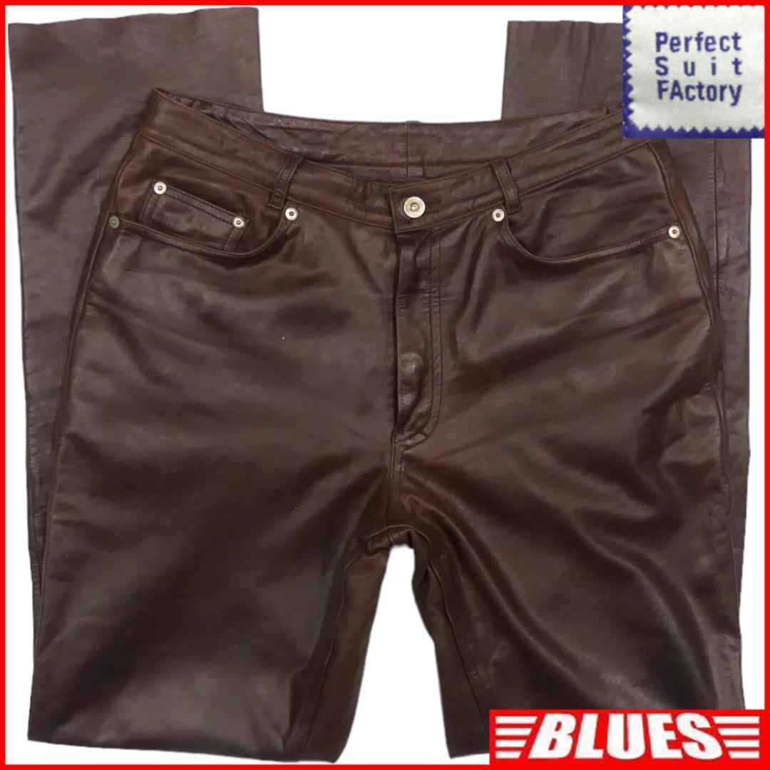 > 即決★Perfect Suit FActory★W32位 レザーパンツ パーフェクトスーツファクトリー メンズ XL 茶 本革 ライダース 本皮
