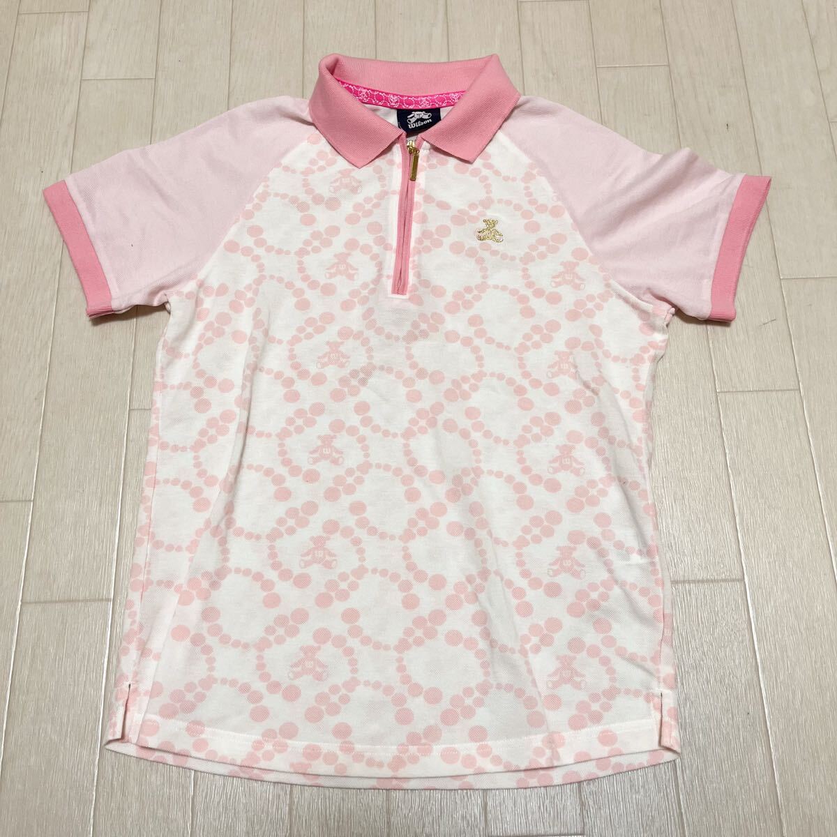 - 和748★ Wilson ウィルソン ポロシャツ 半袖 総柄 ジップネック M ホワイト ピンク レディース テニス