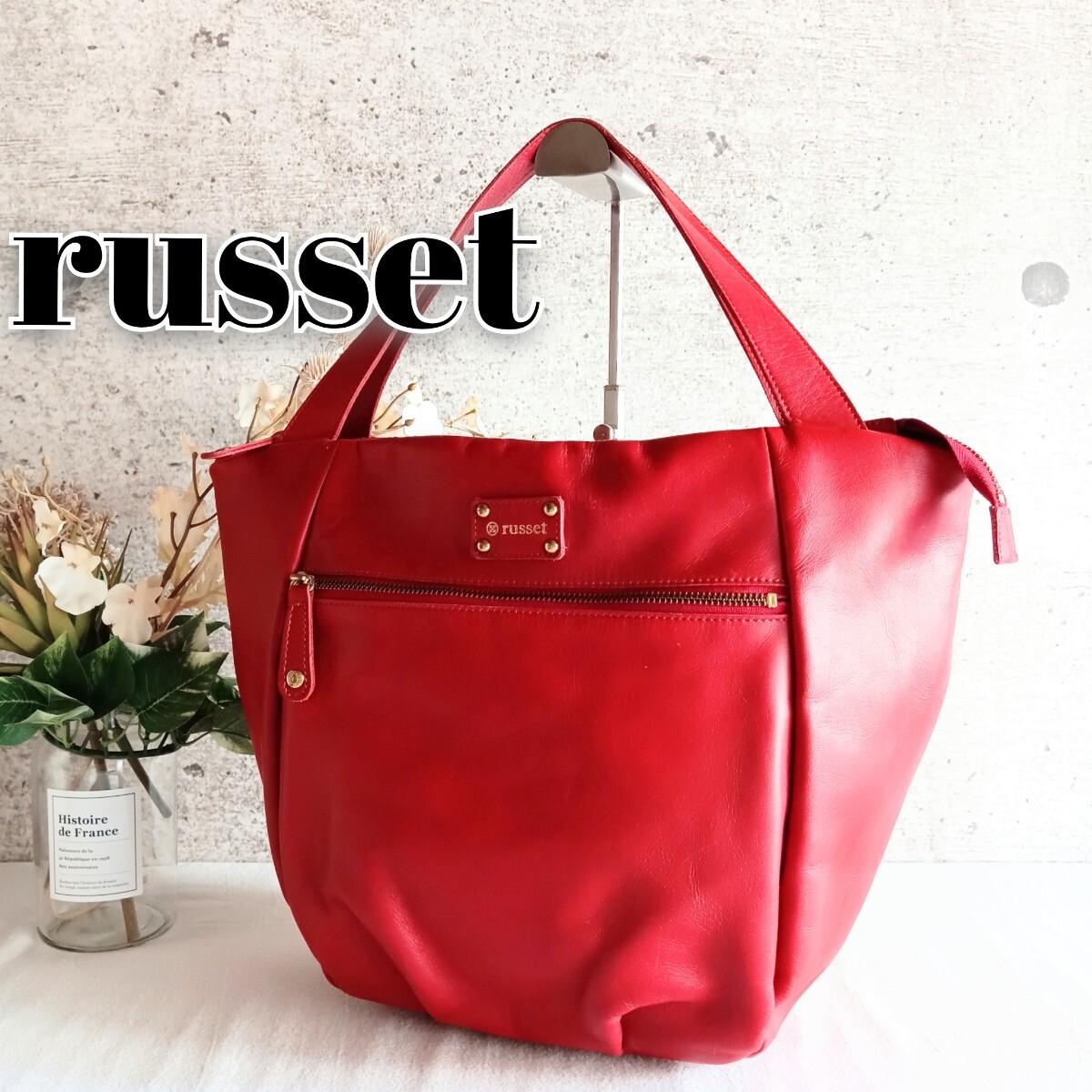 - 良品 ラシット レザー トート ショルダーバッグ ハンドバッグ 鞄 レッド 赤