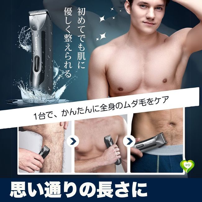 - 【思い通りの長さに】ボディシェーバー 男性用 メンズ すね毛 髭 眉毛 VIO トリマー LEDライト付き 電動 長さ調整 人気 おすすめ