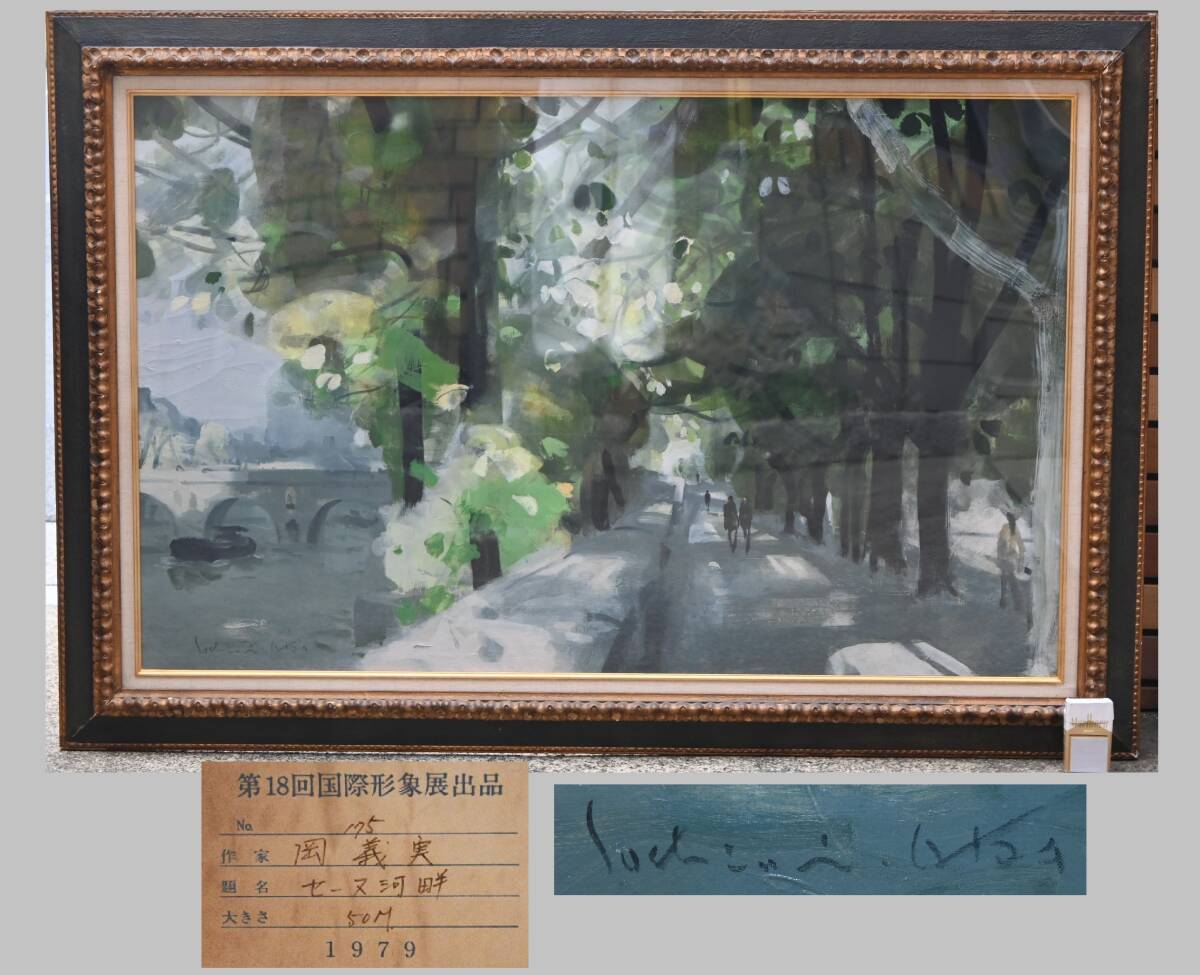 - 真作 岡義実 第18回(1979年) 国際形象展出品作『セーヌ河畔』油彩 M50号 額装 共シール 大作 福岡県生 師は増田誠 パリ フランス 仏 風景画