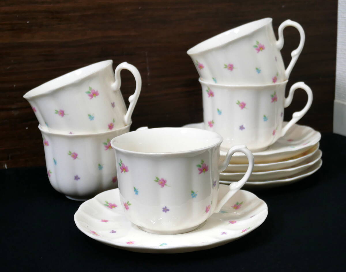 - ▲(R705-H130) NKH Living Mode カップ&ソーサー 5客セット 日本製 小花 花柄 フラワーモチーフ ホワイト