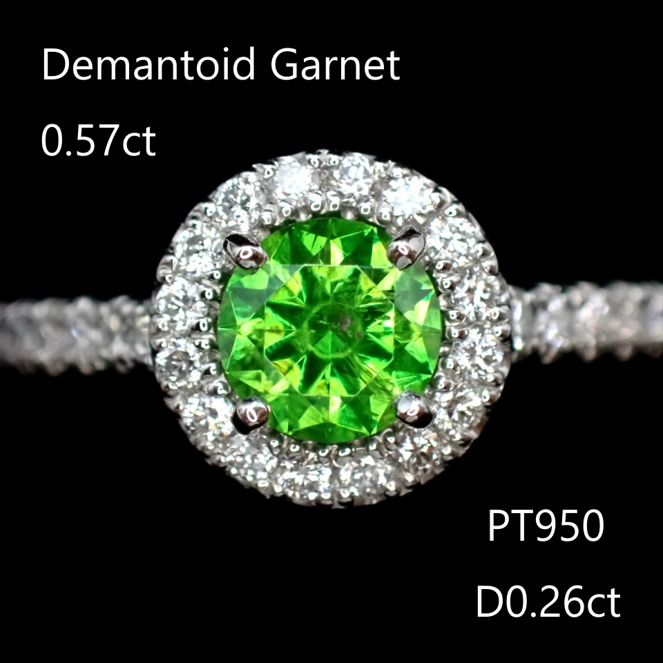 - 【訳アリ超特価!】(日独鑑別書)ロシア産超高品質大粒デマントイドガーネット0.57ct 脇ダイヤモンド計0.26ct PT950