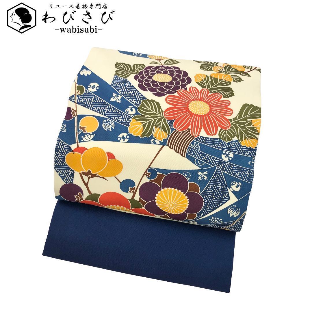 > 名古屋帯 塩瀬 型染 束熨斗に花模様 卵色 O-5109 着物 きもの kimono 和服 和装 中古 リサイクル着物 【送料無料】