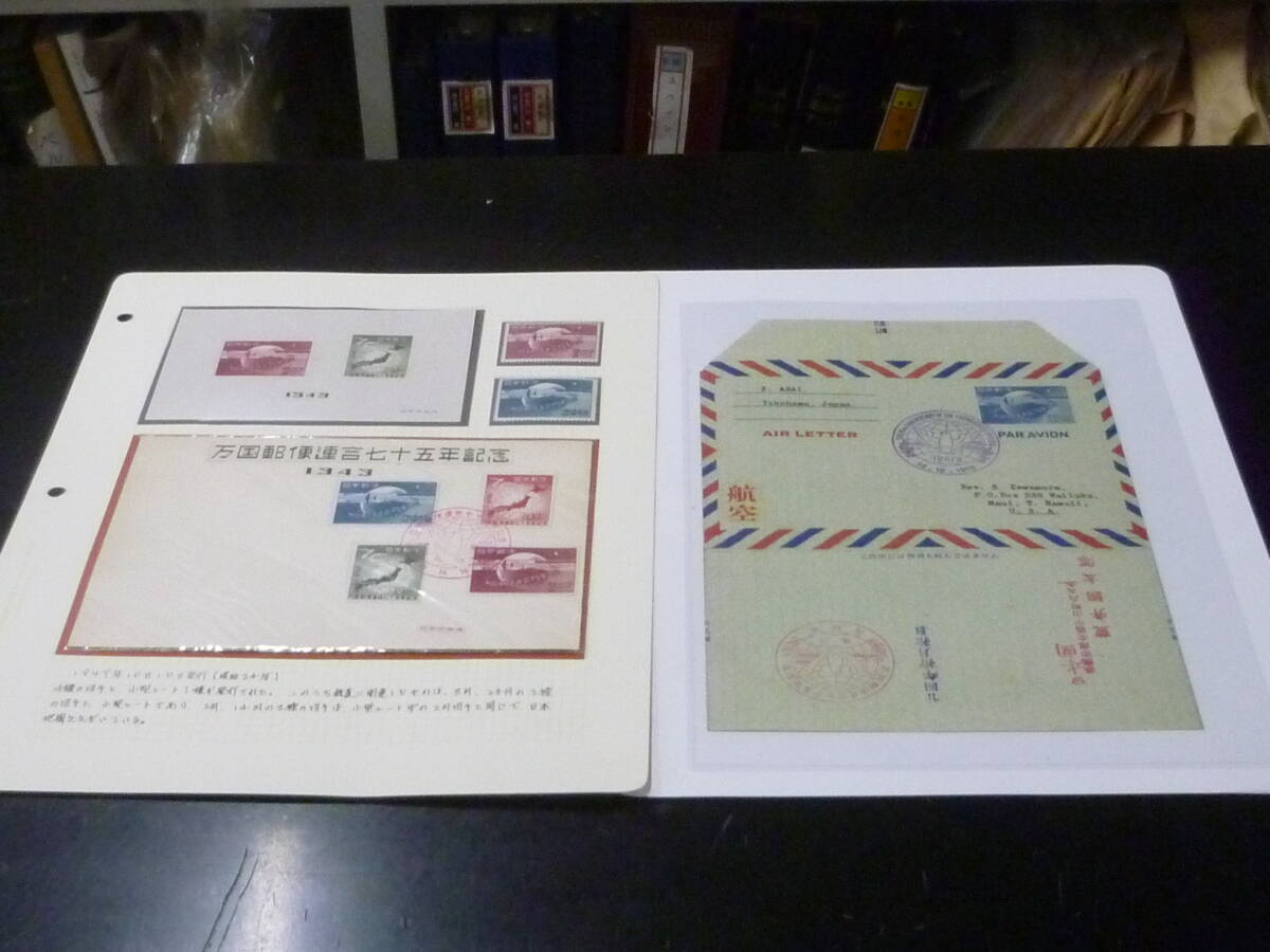 - 日本切手 №6 1949年 UPU75年 2種完+小型シート+FDC+航空初日印付カバー 2リーフ 切手=未使用NH・VF