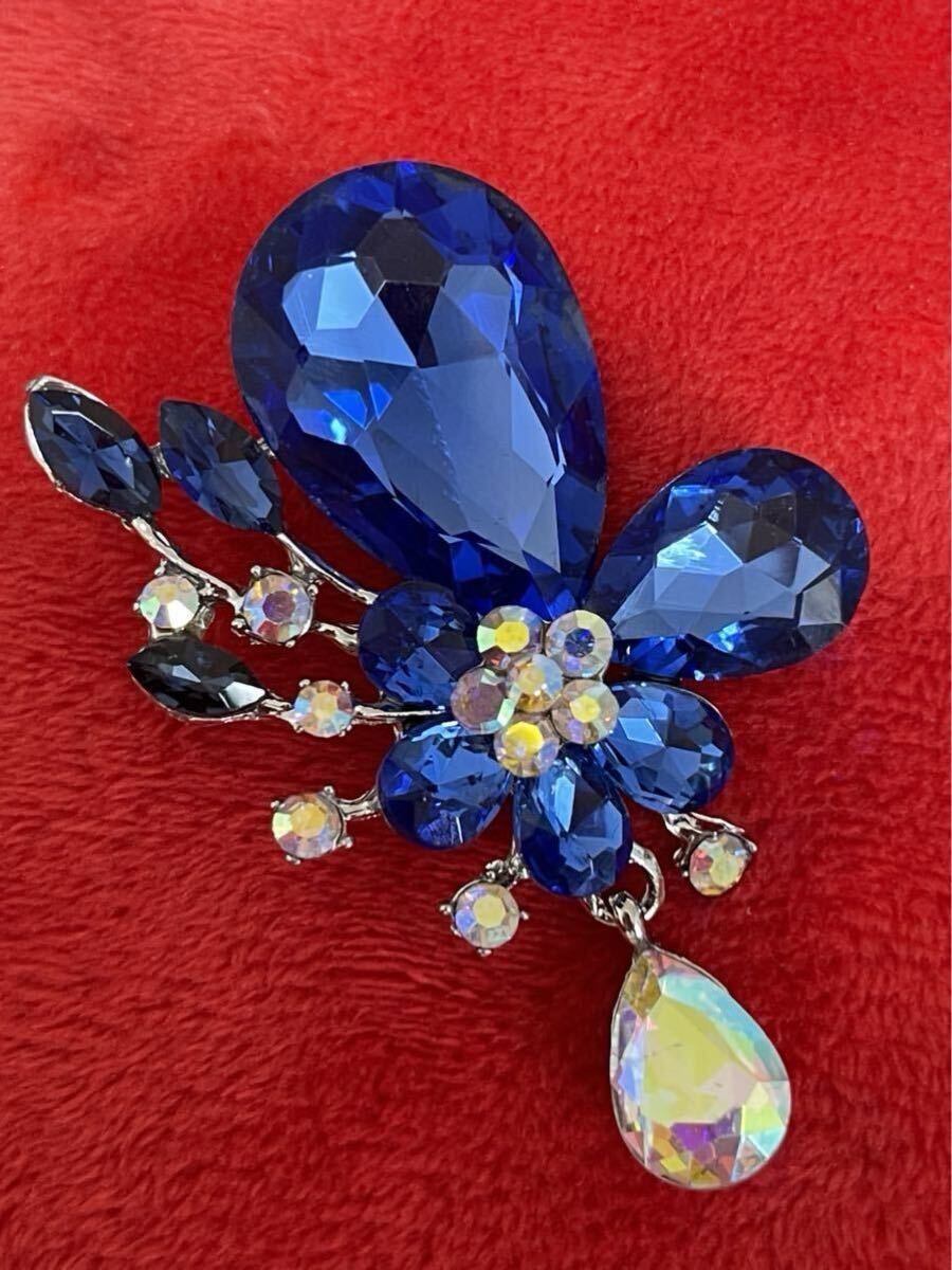 - 優雅♪ 高貴♪ 高級精選クリスタル ブロッチ 結婚式 パーティー等不可欠なアイテム♪キラキラ♪ ブルー