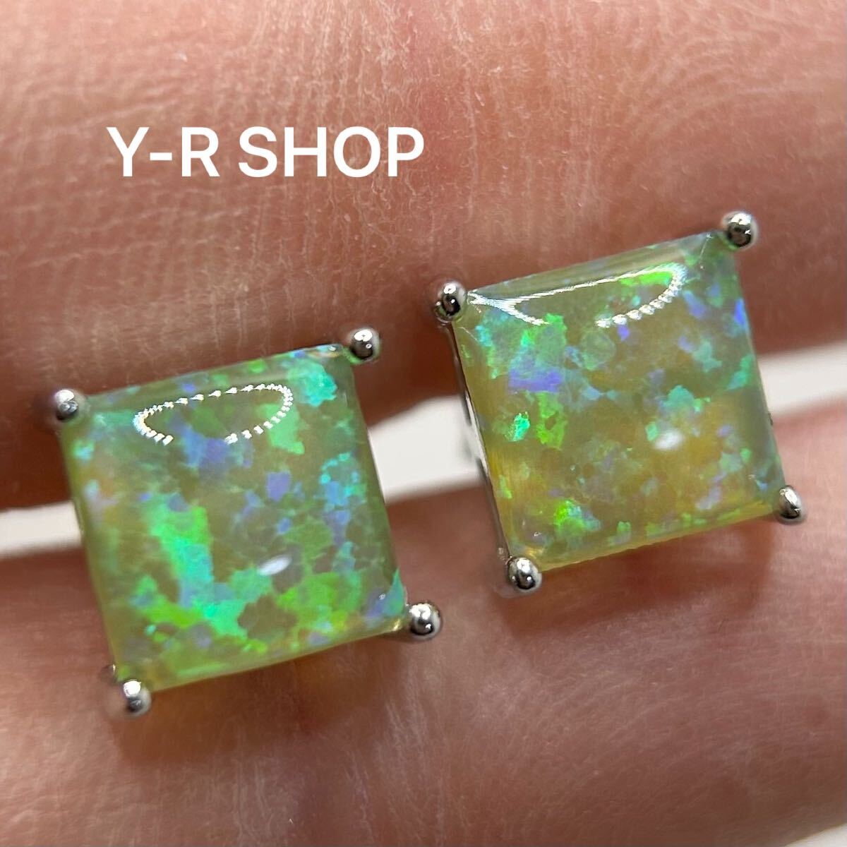 - グリーンファイヤーオパール のスクエア型ピアス★レディースシルバー925刻印カラーストーンアクセサリーハワイアンジュエリー新品宝石Y-R
