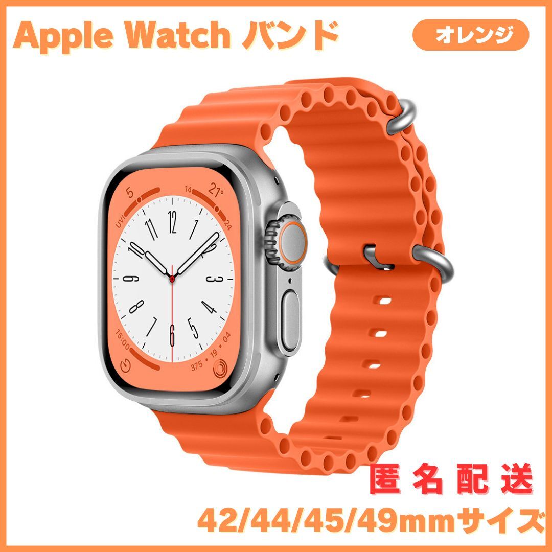 > アップルウォッチバンド Apple Watch band オーシャンバンド風 スポーツ 42㎜/44㎜/45㎜/49㎜ 共通サイズ 橙 オレンジ シリコン 互換品
