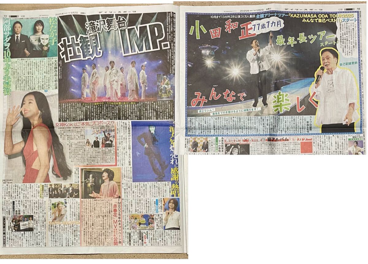- ☆デイリースポーツ 5/2 小田和正 IMP Koki 三浦大知 松たか子 阿部サダヲ