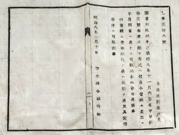 - f25051915〇明治布告布達 国書刻成 栃木県 明治9年〇和本古書古文書