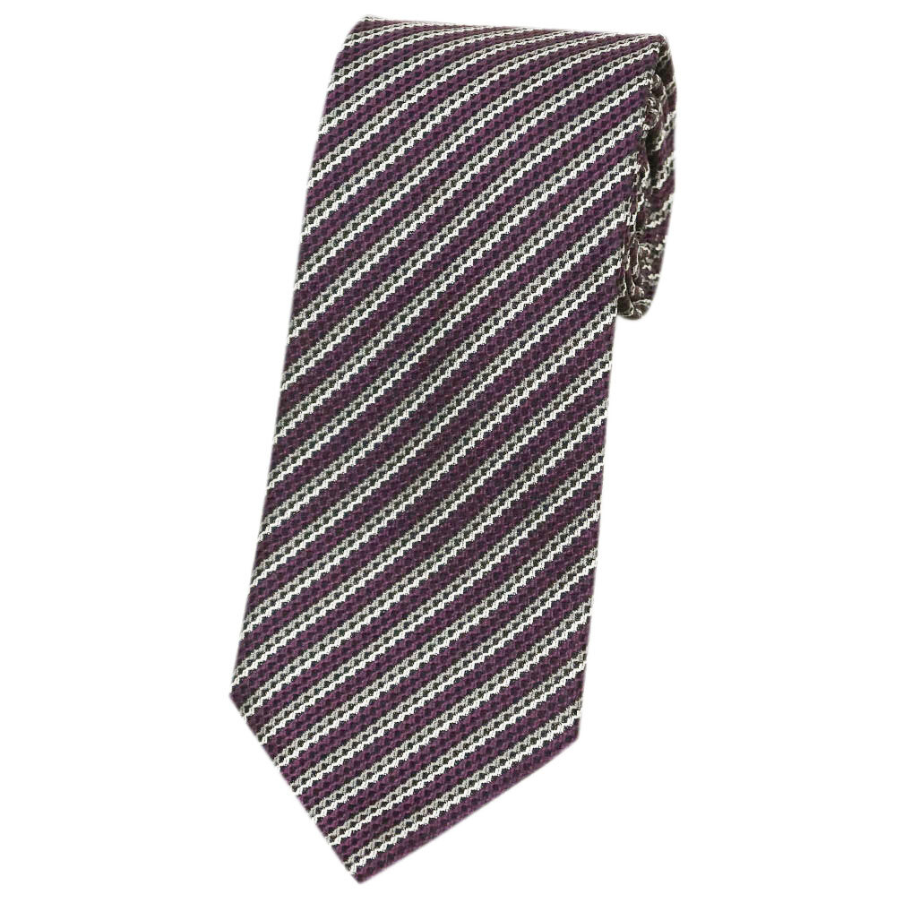 - 未使用 ゼニア ブランド ネクタイ エルメネジルド・ゼニア 高級 シルク 100% ストライプ グレープ パープル 紫 モーブ
