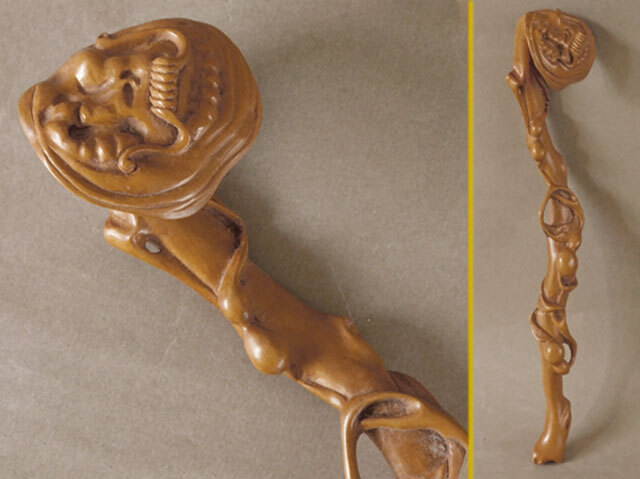 - 煎茶道具 木彫 霊芝 如意 長さ約30㎝