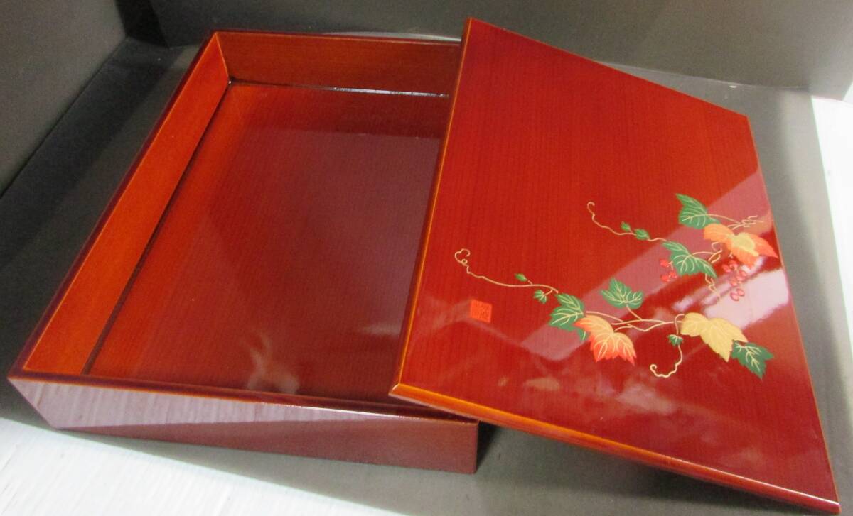 - 文箱 書類入れ 春慶塗 木製漆器 書類収納ケース つた紋様 約:(22㎝x29.5㎝x蓋含H5.8㎝)