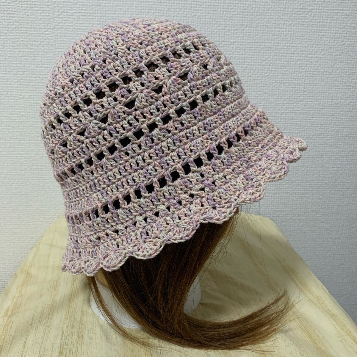 - 【a105】コットン 麻 レース編み フリル 淡桜 バケットハット 帽子
