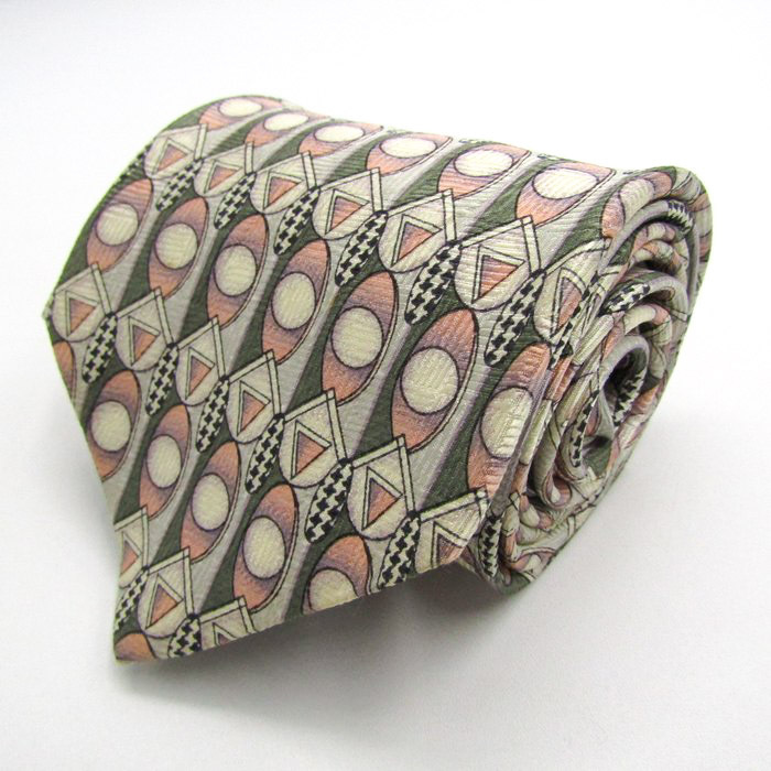 - ロベルタバルディーニ ブランド ネクタイ 総柄 ドット 格子柄 パネル柄 シルク PO メンズ カーキ Roberta Baldini