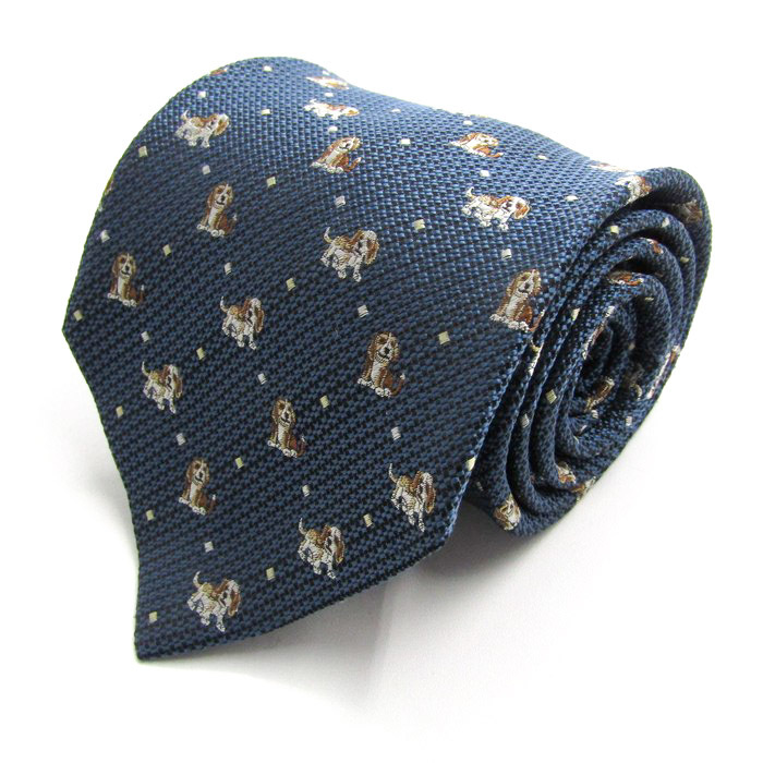 > ジュンコシマダ ブランド ネクタイ ドット 小紋柄 動物柄 犬 シルク PO メンズ ネイビー JUNKO SIMADA