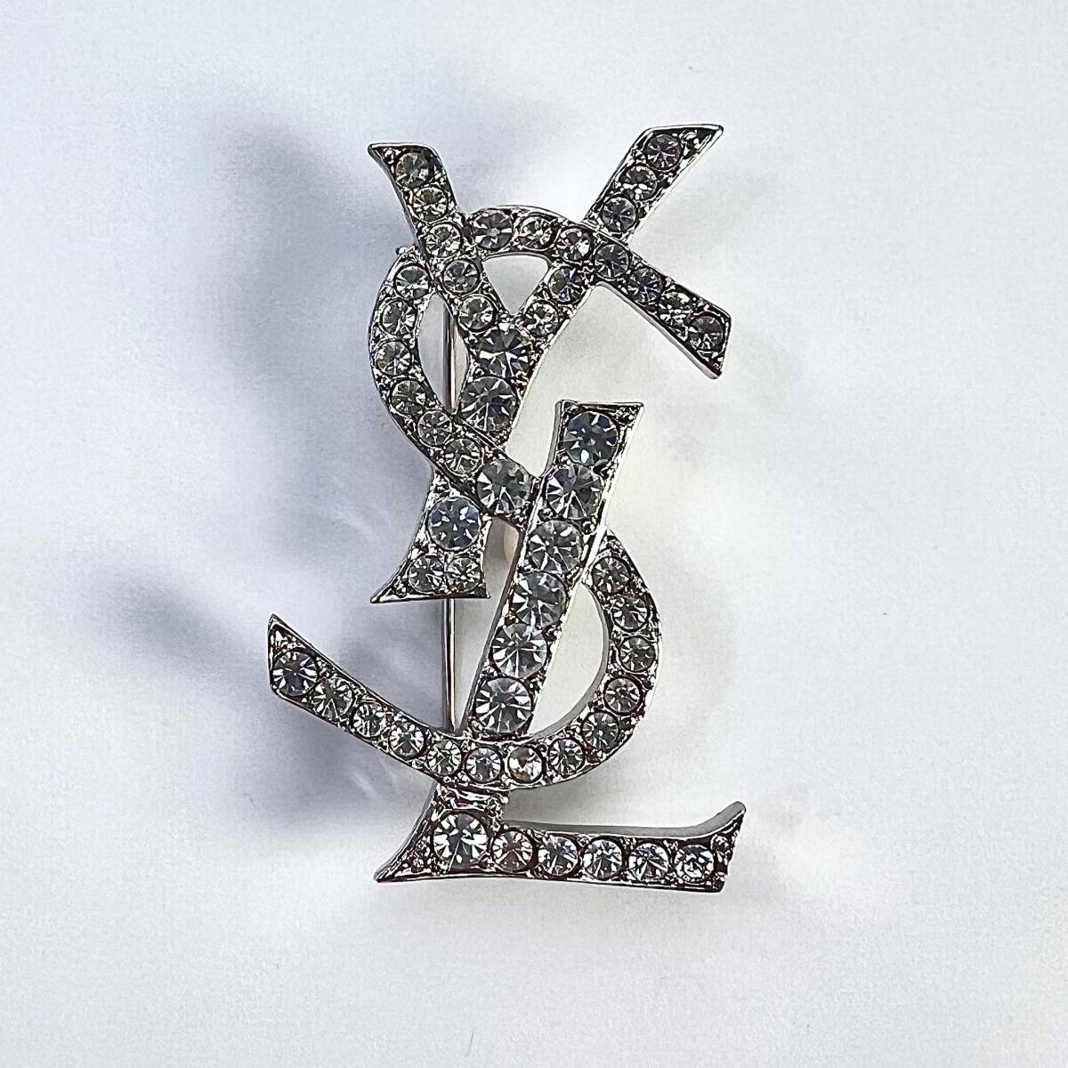 - Yves Saint Laurent イヴ・サンローラン ロゴ ラインストーン ブローチ シルバー メッキ レディース アクセサリー 美品