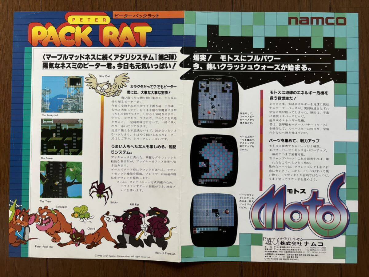 > チラシ ピーターパックラット モトス アーケード 1985 ナムコ パンフレット カタログ フライヤー namco