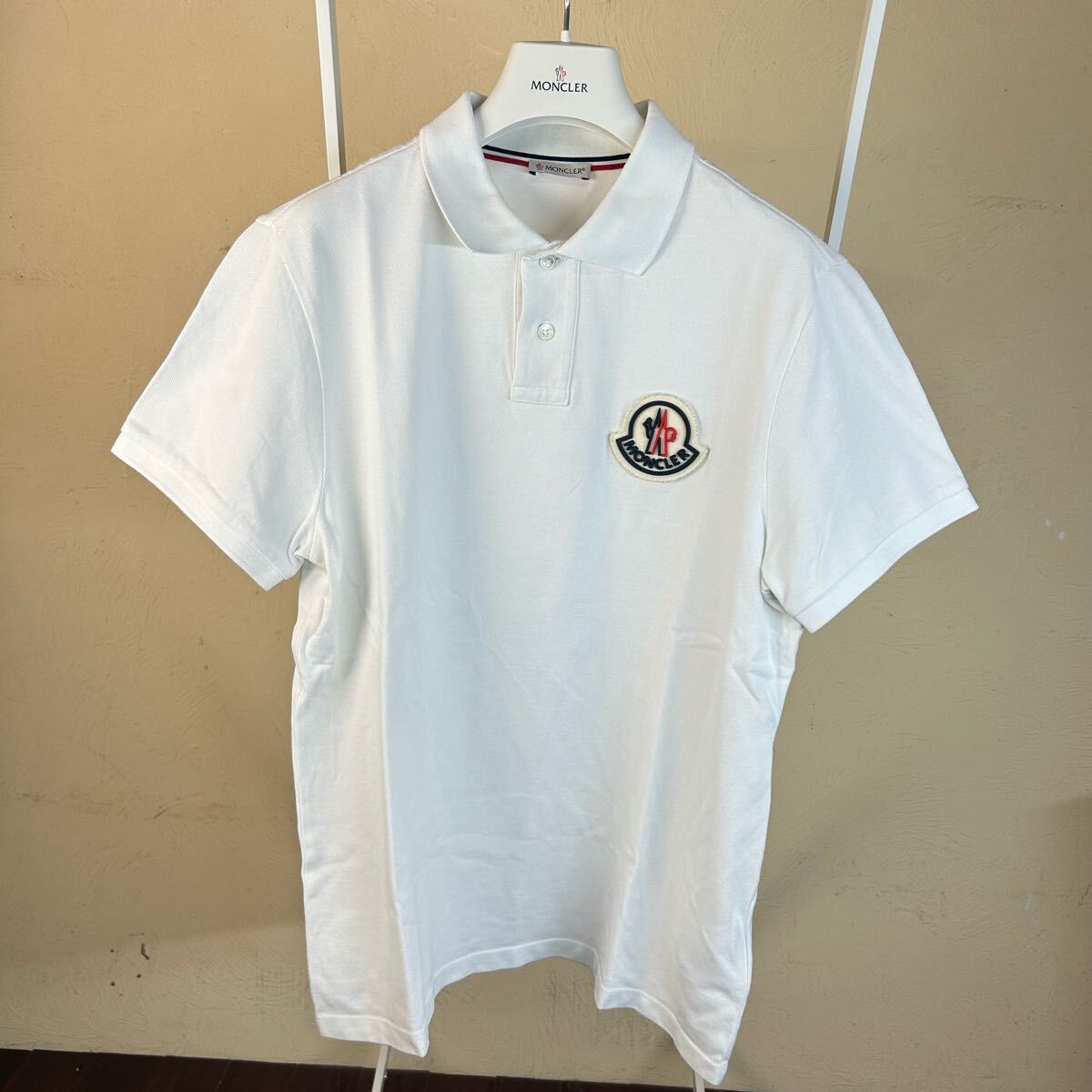 - 【美品】 MONCLERモンクレールラバーワッペン半袖ポロシャツ白M