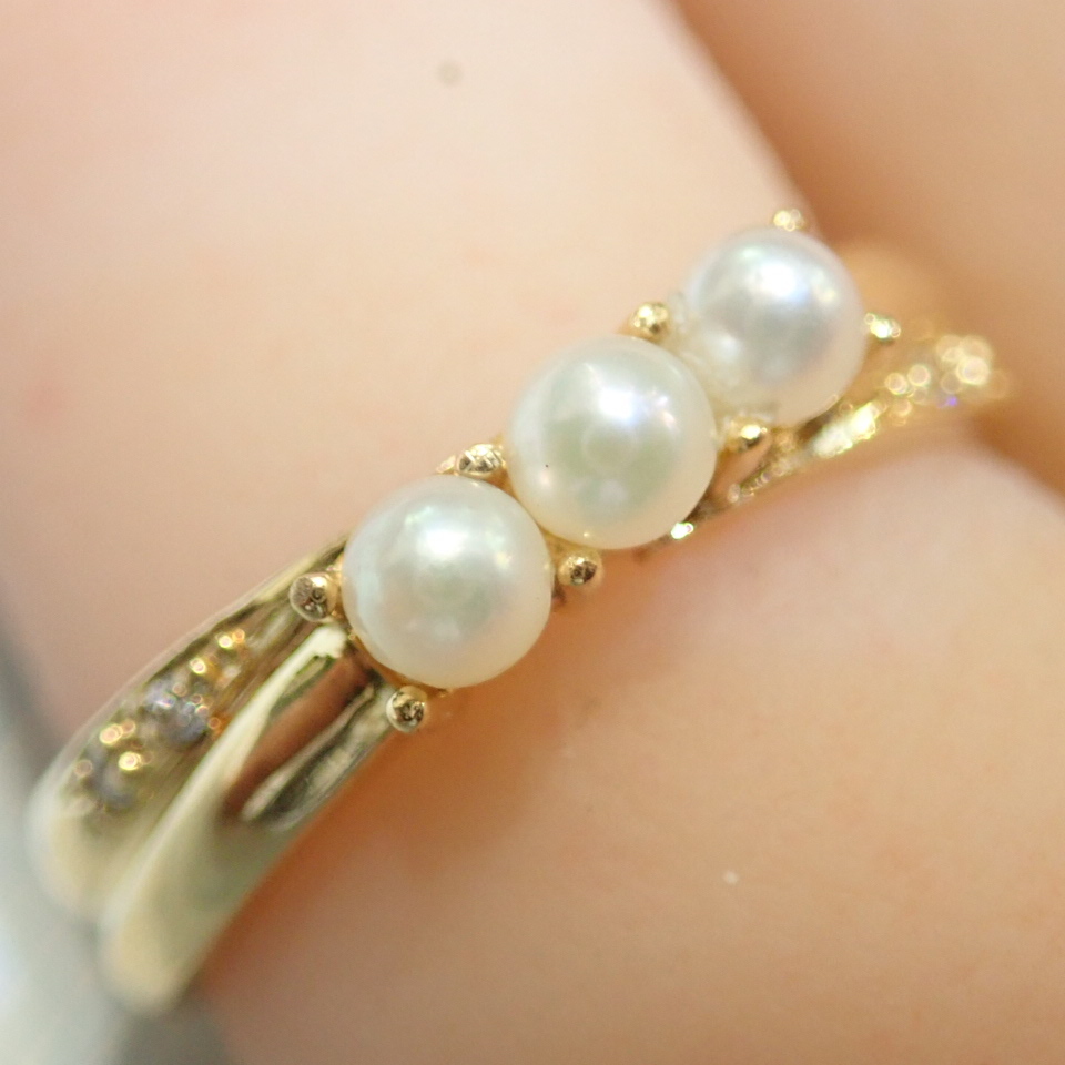 - ■K18 ELLE ベビーパール&ダイヤモンド あこや真珠リング 約2.9mm■パール 本真珠 アコヤ■指輪■中古磨き仕上げ■