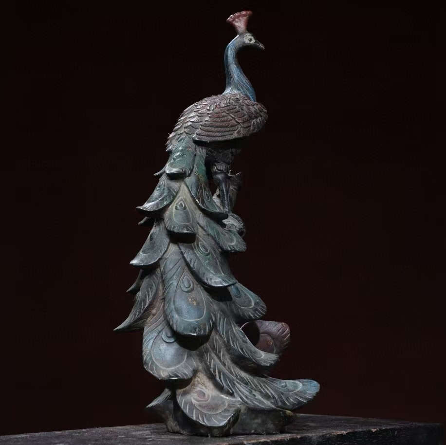 - 仏像 清代 旧蔵 古銅脱金【古花鳥クジャク】 銅製 銅琉金 仏教 唐物 收蔵品 時代物 古美術 細密造 古置物 希少珍品 供養品 5.31