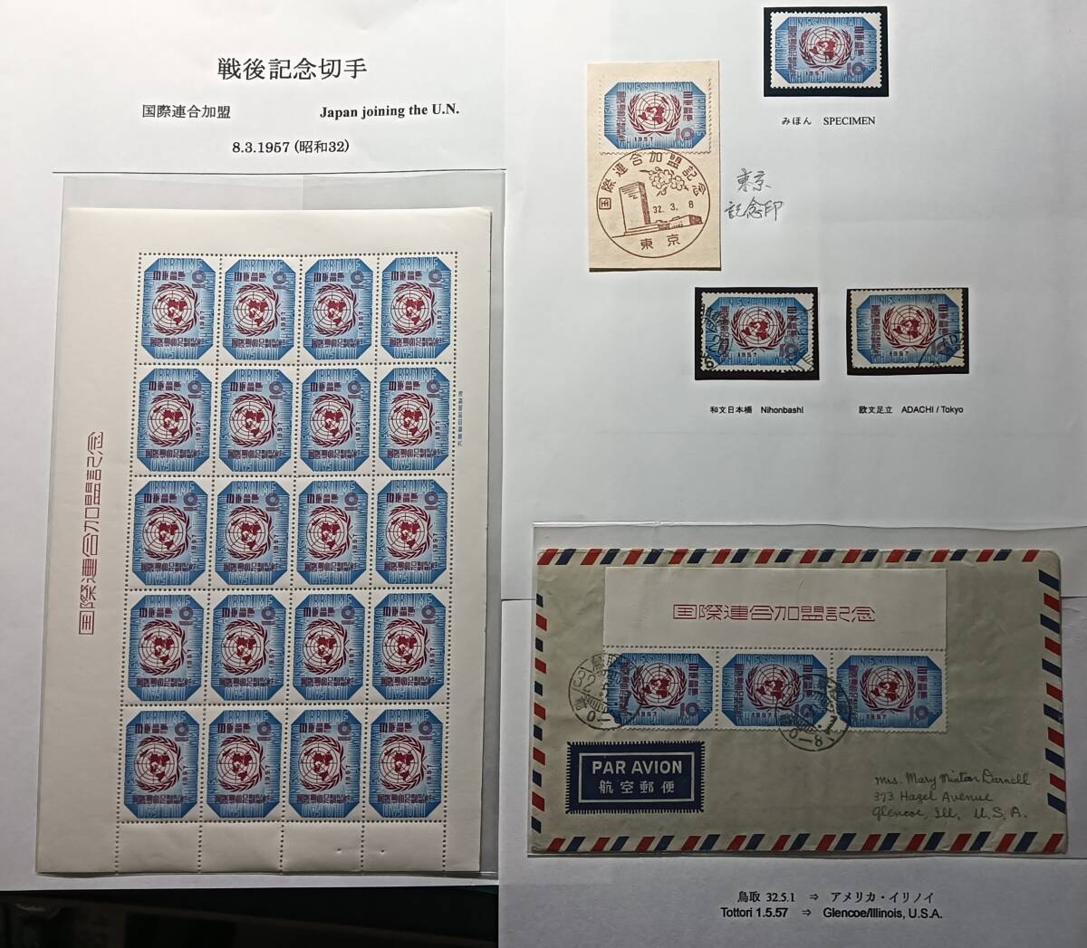 - 1957年コレクション、完全シート、みほん加刷、消印まちまち、カバーなど