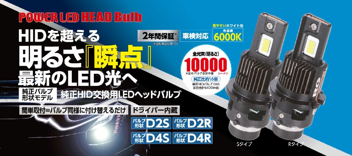 ◆HIDを超える明るさ10000ルーメン!純正バルブ形状モデルで簡単交換!