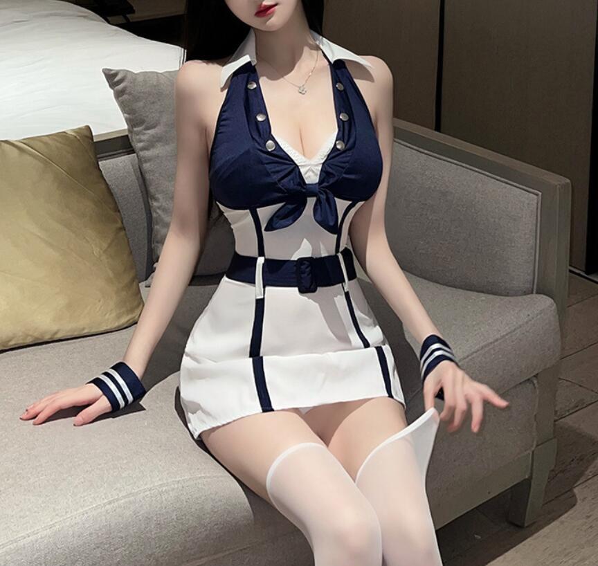 > 人気推薦/ コスプレ衣装 誘惑 超セクシー 悩殺 セーラー服風 制服【ワンピースショーツ腕輪 3点セット】 ミニスカート ナイトウェア/