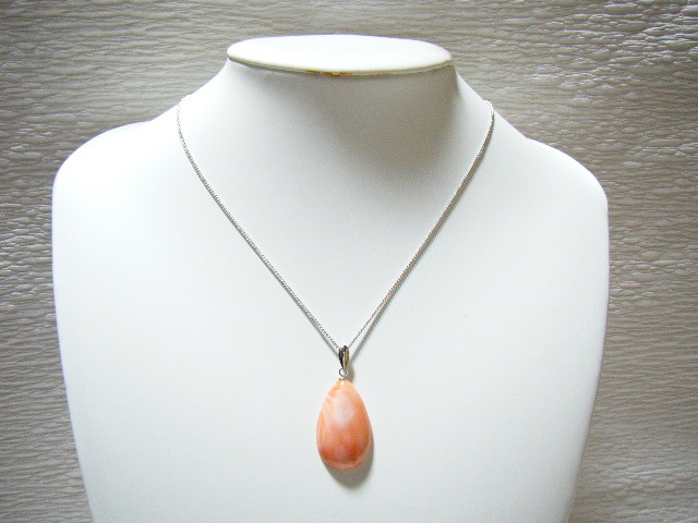 - ★珊瑚 サンゴ バチカン GSILVER トップ 最大幅 27mm×17mm しずく型 ペンダント ネックレス シルバーカラー【AN17】