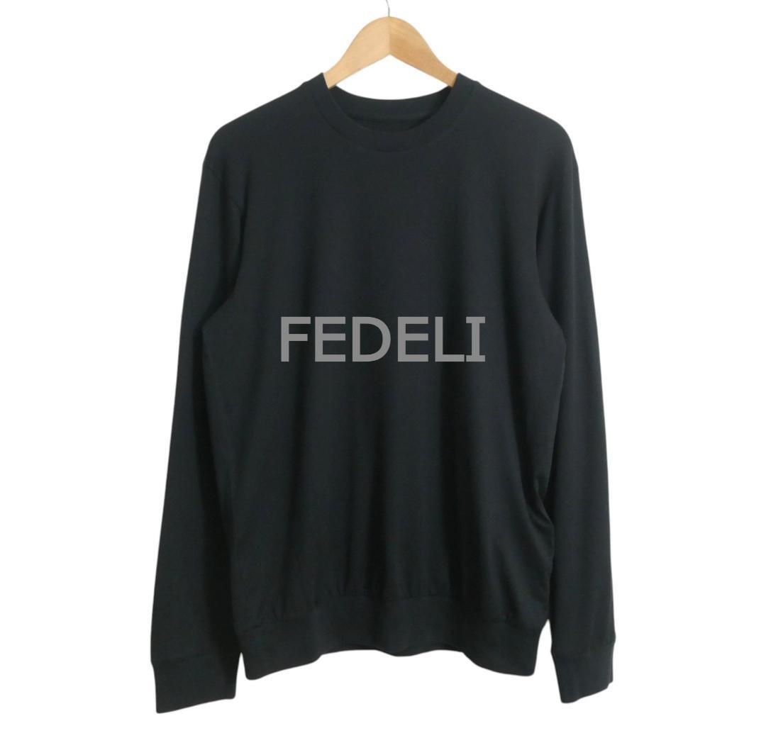 - 新品同様 FEDELI フェデリ サイズXS ABE スーピマコットン クルーネック 長袖 Tシャツ カットソー 黒 ブラック