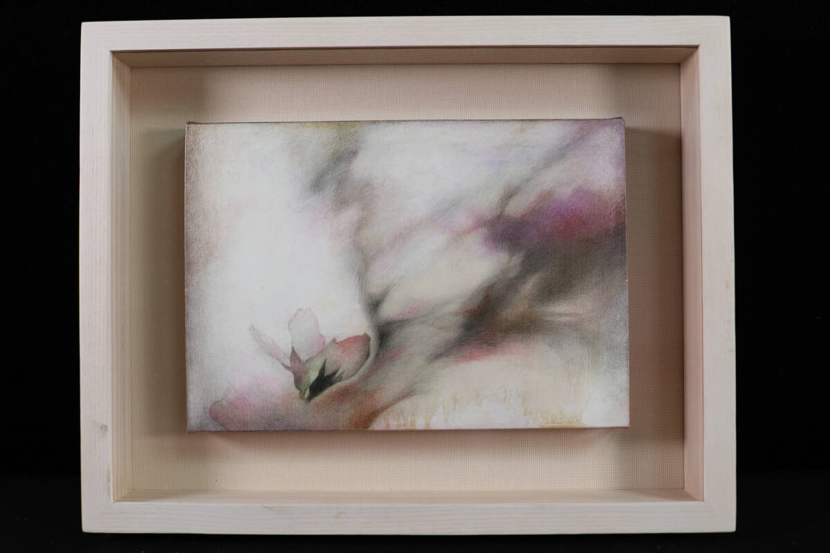 > ◇雅◇ 真作保証 粉川江里子 「桜一陽炎」 SM号 2014年制作 油彩 紙 証明書 額装 箱付 /YS.25.5 [J88] OV