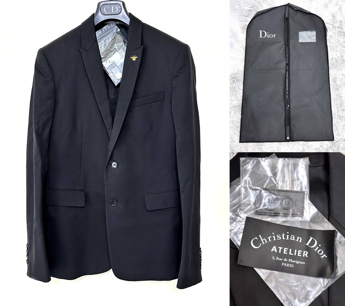 > 名作 レア 完備品 Dior HOMME ディオールオム クリス期 BEE エンブロイド アトリエ ジャケット テーラード 46 黒 M ロゴ 刺繍