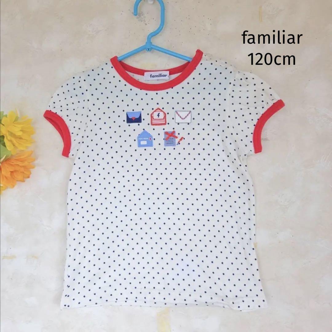 > ファミリア familiar Tシャツ【120】水玉 ドット 赤ライン キッズ