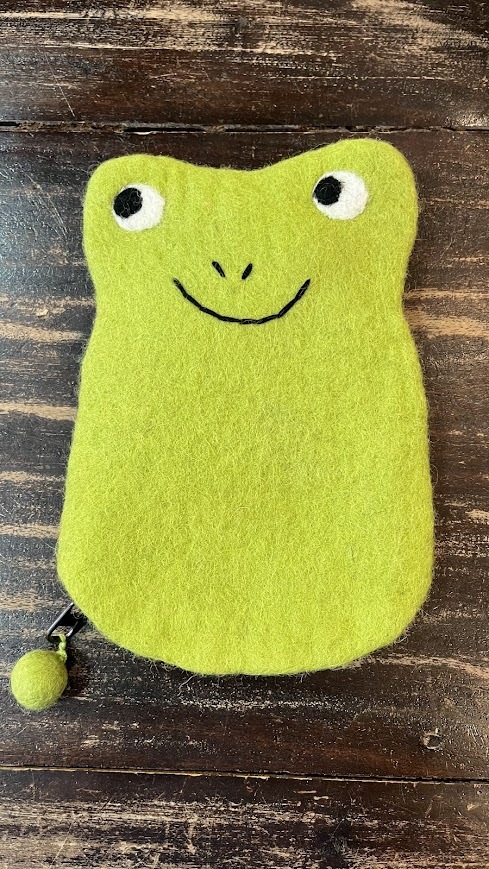- かわいい!!と評判★フェルトポーチ ハンドメイド カエル ライトグリーン★小物入れ コスメポーチ