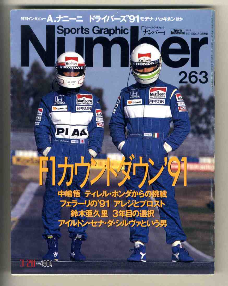 書名/記事: 91.3.20 ナンバーNumber263/F1カウントダウン'91-アイルトン・セナ・ダ・シルヴァという男/中嶋/,鈴木亜久里...、ニッポンを選んだ外人レーサーたち、シュガー・レイ・レナードへの鎮魂歌、あの頃のスワローズ、…