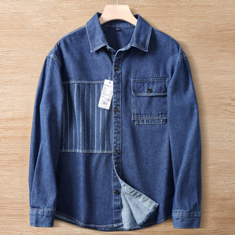 - W0359-M紺色 新品 綿混 デニム 長袖シャツ メンズ 柔らかい 吸汗速乾 通気 涼しい ダンガリー 薄手 春夏 オシャレ デニムシャツ サマー