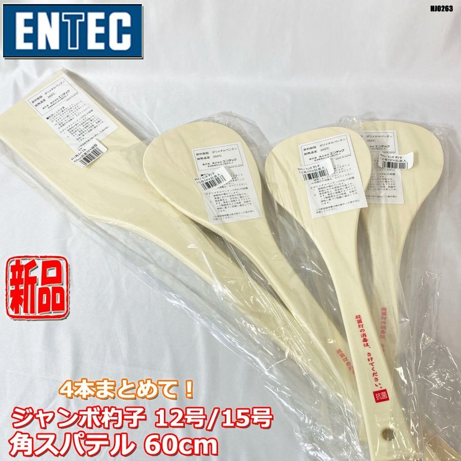 - ジャンボ 杓子 4本まとめて 抗菌 耐熱 200℃ 12号 15号 しゃもじ 角スパテル 60cm 業務用 エンテック 調理器具 大きい ◇HJ-0263