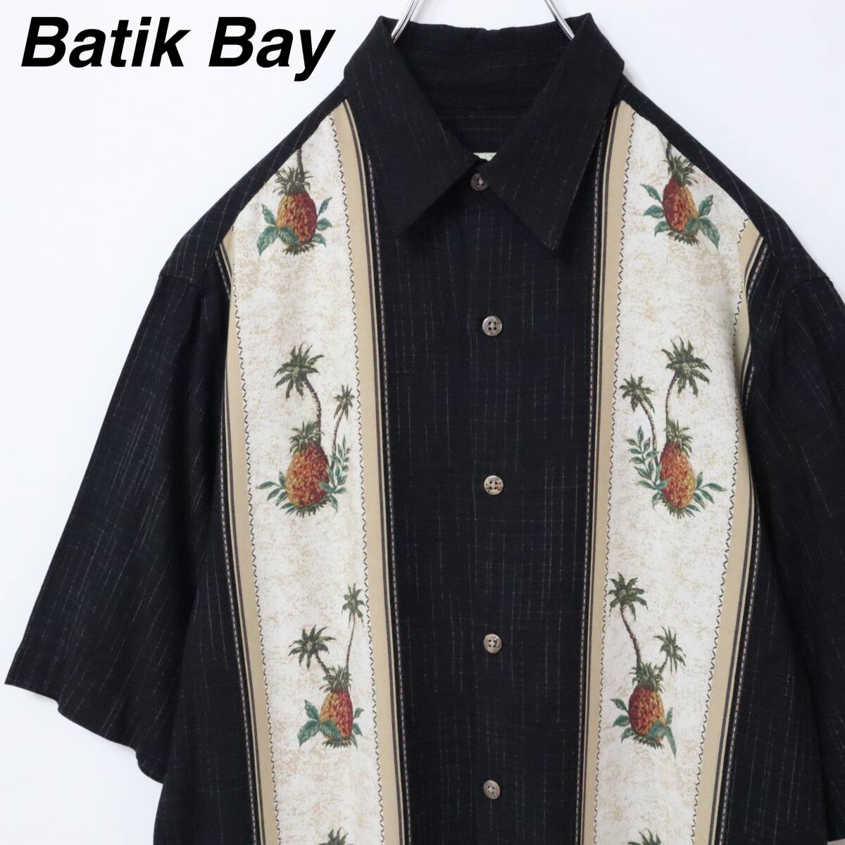 - 【キューバシャツ】バティックベイ 総柄シャツ パームツリー Sサイズ ブラック