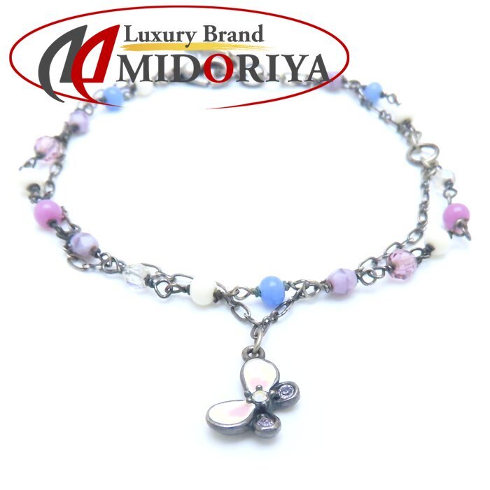> ANNA SUI アナスイ バタフライ ブレスレット ラインストーン 蝶モチーフ シルバーメッキ/293826【中古】