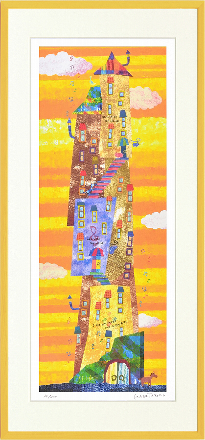 - ジークレー版画 額装絵画 はりたつお作 「音符塔」 720X330mm