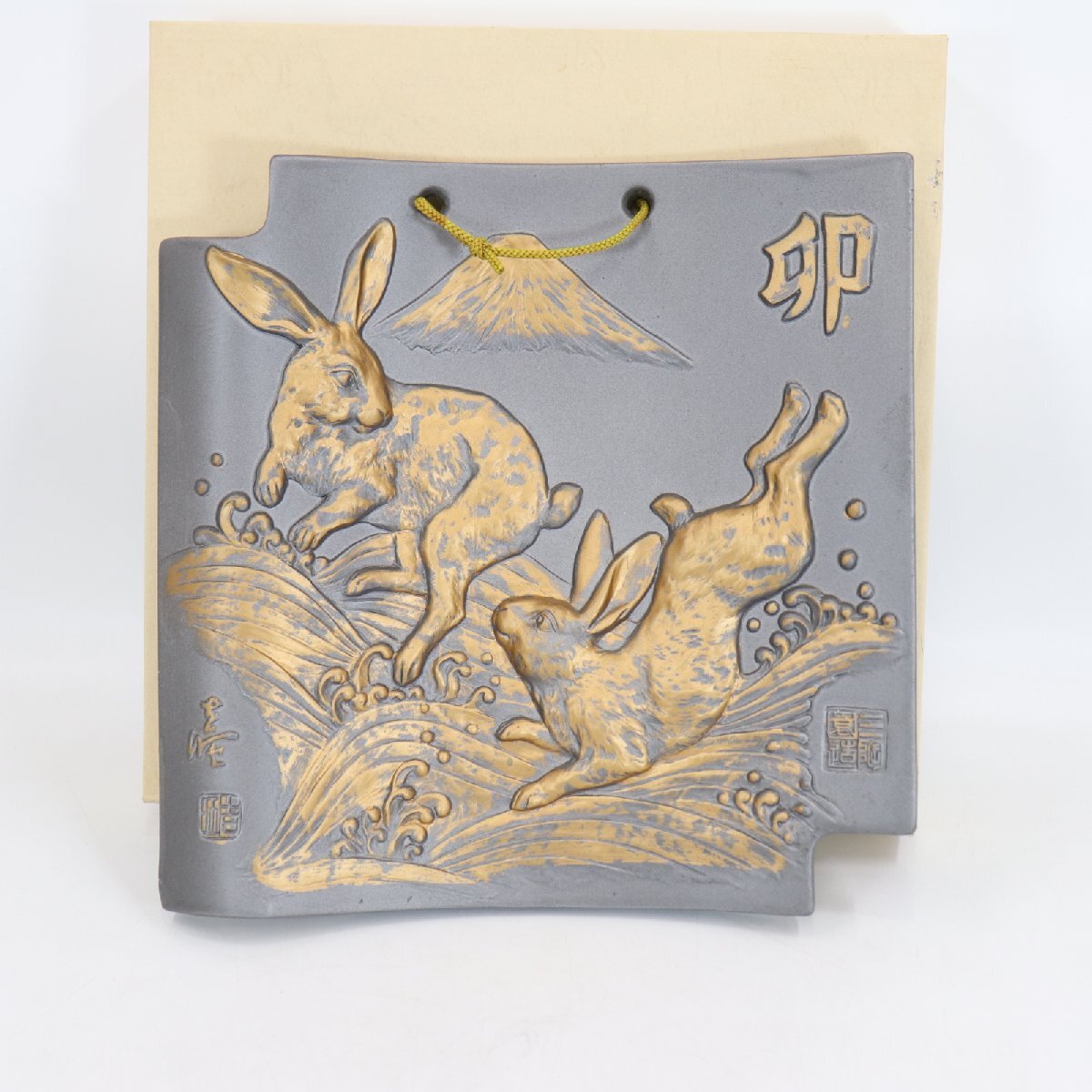 > ER-80 三陶園 古代瓦 額瓦 干支瓦 卯 うさぎ ウサギ 開運 縁起物 飾瓦 置物 陶磁器 インテリア 箱付
