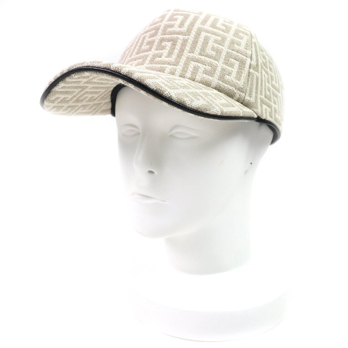 > 極美品△BALMAIN バルマン XF1XA015 HB04 リネン コットン モノグラムジャガード ベースボールキャップ 帽子 ベージュ系 TU 箱付 メンズ