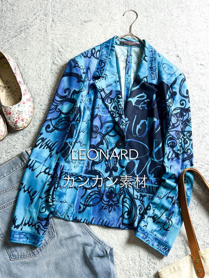 - 【LEONARD】カンカン素材 英文字柄テーラードジャケット トリム ロゴ釦 M