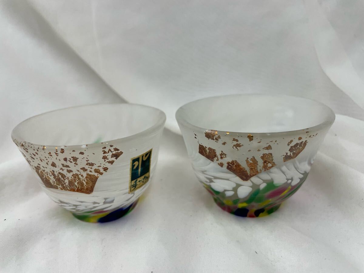 - ガラス製 手作り ペアグラス ぐい呑 盃 2点セット
