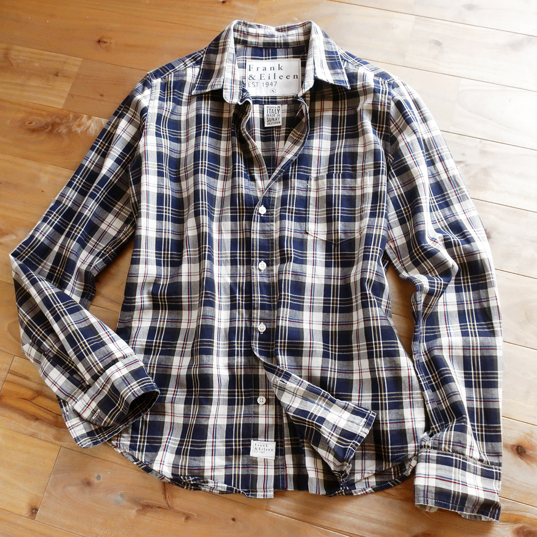 - 美品☆Frank&Eileen スキッパーシャツ BARRY クラシックチェック ヘリンボーンコットン ネイビー (S) USA製