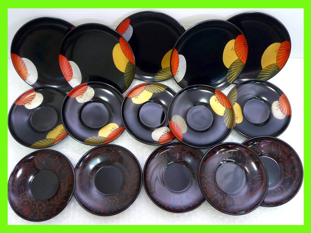 - 輪島塗 コースター 小皿 15枚 まとめてセット 細密 美彩 艶感 高級感 華美 箱 レア 茶道具 和室 伝統日本美術 縁起物 マニア 長期保管品
