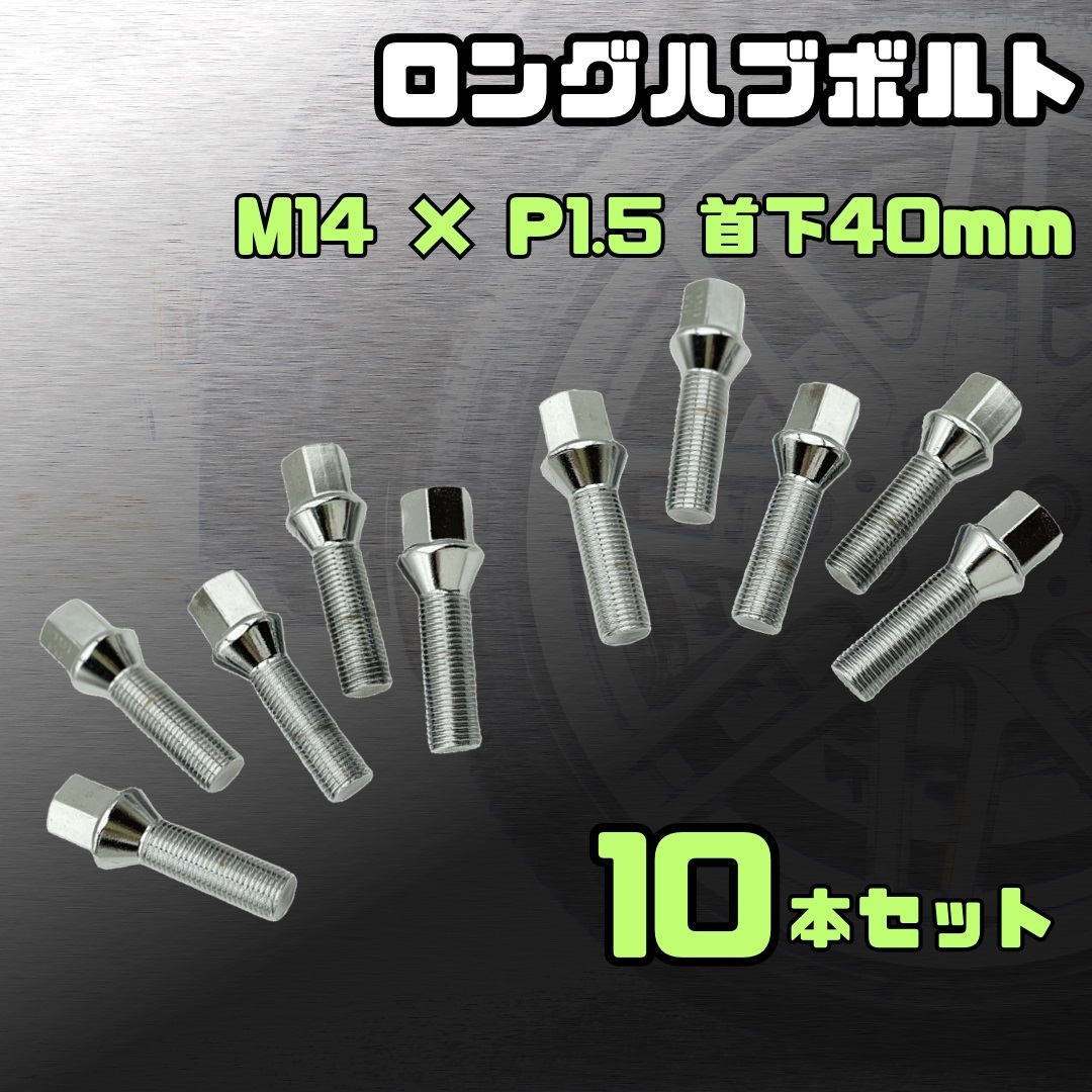 - 【10本セット】 ラグ ボルト M14 * 1.5 首下 40mm ロング ハブ 車 テーパー 60° 17HEX VW フォルクスワーゲン Audi アウディ ベンツ BMW